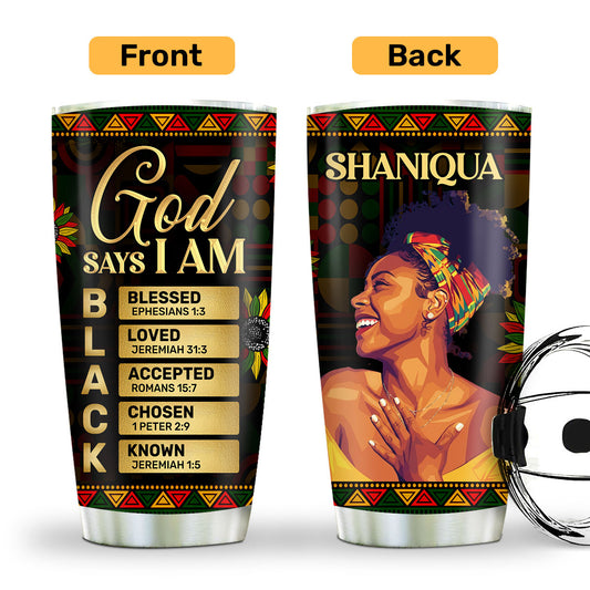 God Says I Am Black | Personalized Stainless Steel Tumbler