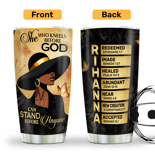 She Who Kneels Before God Can Stand Before Anyone | Personalized Stainless Steel Tumbler
