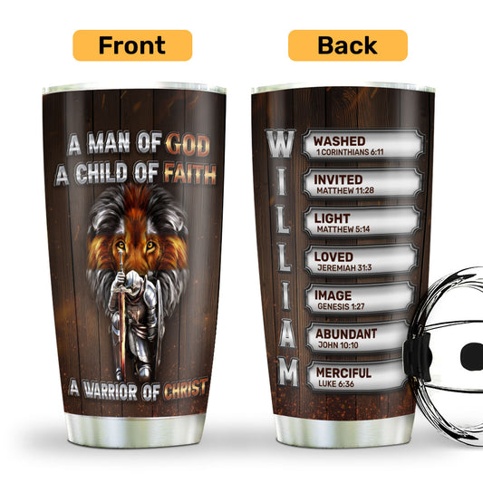 A Child Of God A Man Of Faith A Warrior Of Christ | Personalized Stainless Steel Tumbler
