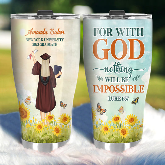 For With God, Nothing Will Be Impossible | Personalized Stainless Steel Tumbler