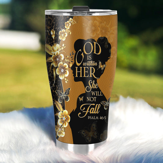 God Is Within Her She Will Not Fall | Personalized Stainless Steel Tumbler
