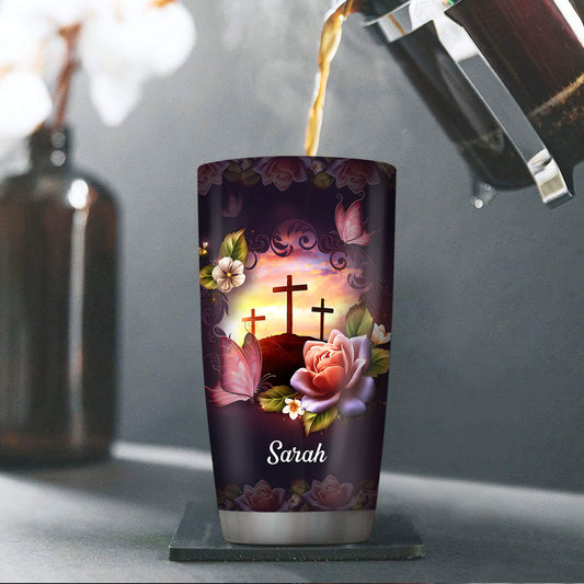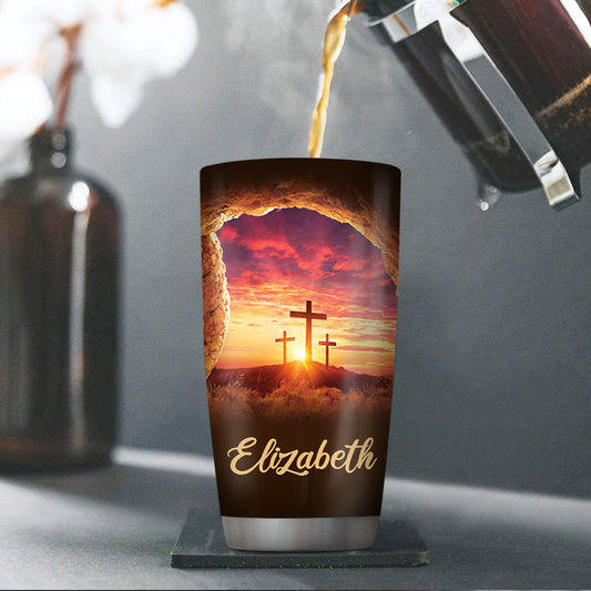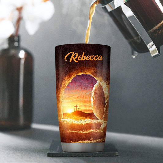 Unique Personalized Stainless Steel Tumbler 20oz - Because He Lives, I Can Face Tomorrow NUH267