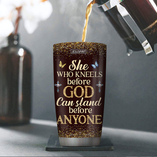 She Who Kneels Before God Can Stand Before Anyone - Awesome Personalized Stainless Steel Tumbler 20oz NUM484
