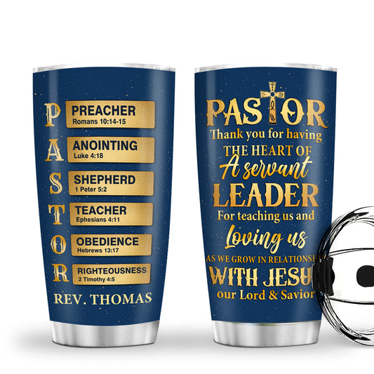 Pastor Thank You For Having The Heart Of A Servant Leader | Personalized Stainless Steel Tumbler