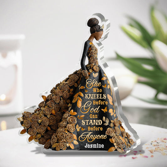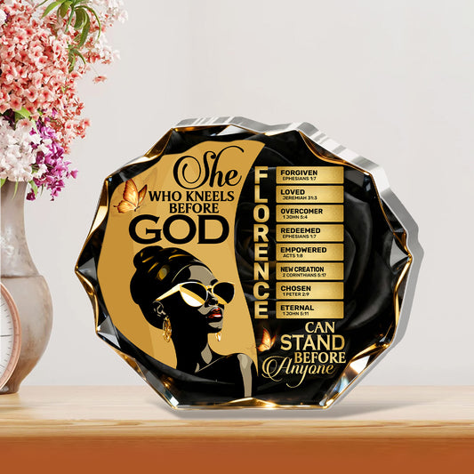 She Who Kneels Before God Can Stand Before Anyone | Personalized Custom Shaped Squared Acrylic Plaque