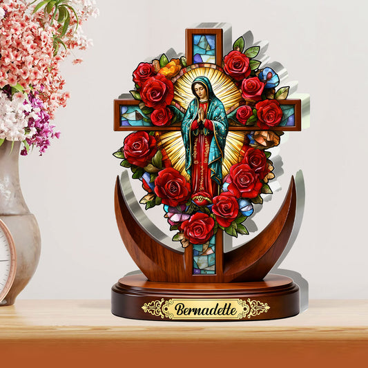 Our Lady Of Guadalupe Roses Cross | Personalized Custom Shaped Acrylic Plaque