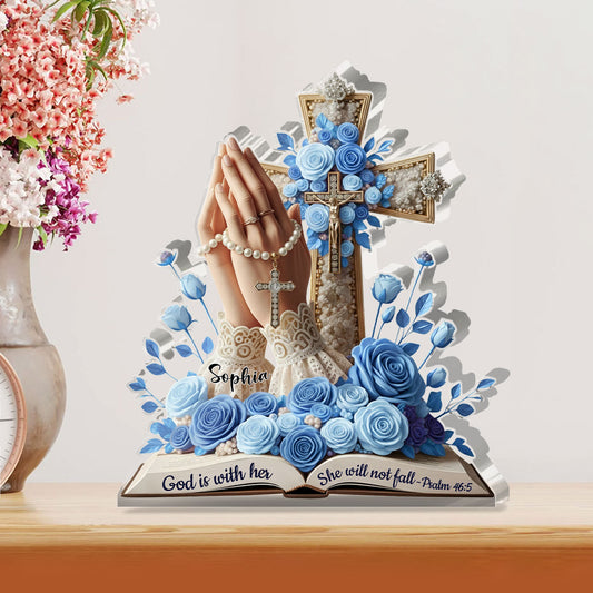 God Is With Her She Will Not Fall | Personalized Custom Shaped Squared Acrylic Plaque