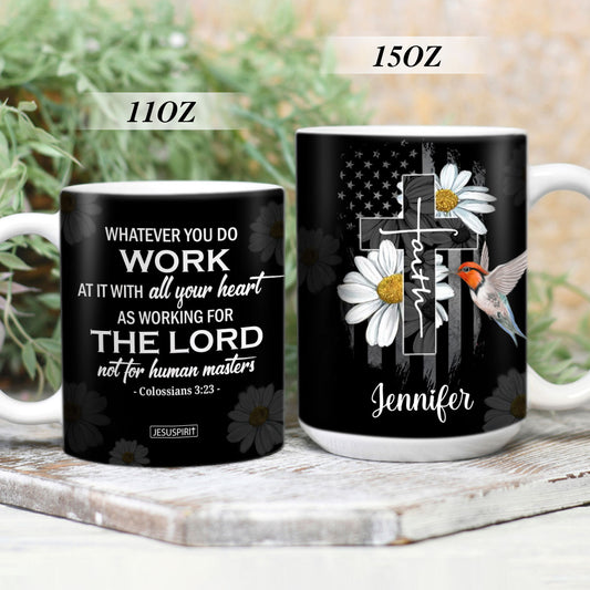 Awesome Personalized White Ceramic Mug - Whatever You Do, Work At It With All Your Heart NUH480