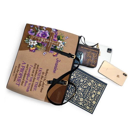 Special Personalized Large Leather Tote Bag - I Ordained Thee A Prophet Unto The Nations NUH487