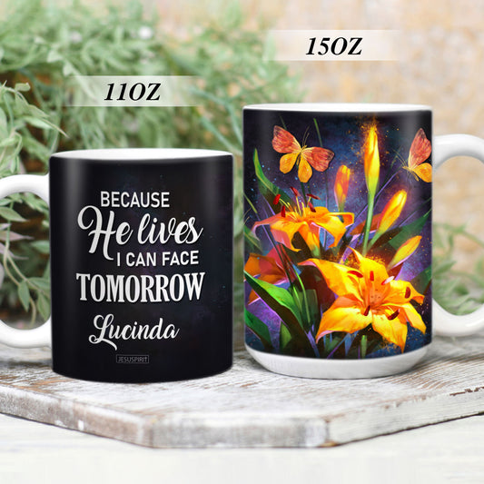 Because He Lives, I Can Face Tomorrow - Personalized White Ceramic Mug H17