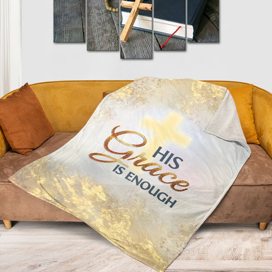 His Grace Is Enough - Cross Christian Fleece Blanket NUM78