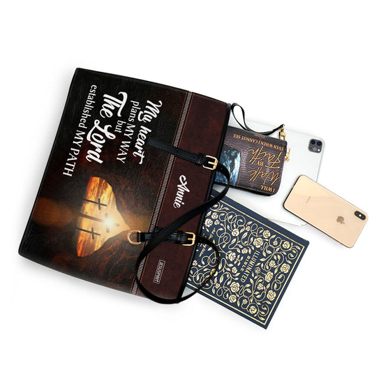 Special Personalized Large Leather Tote Bag - The Lord Established My Path HM424
