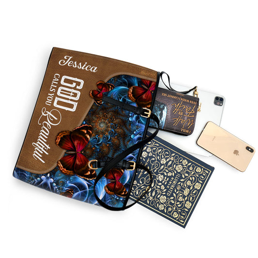 God Calls You Beautiful - Adorable Personalized Large Leather Tote Bag NUH273