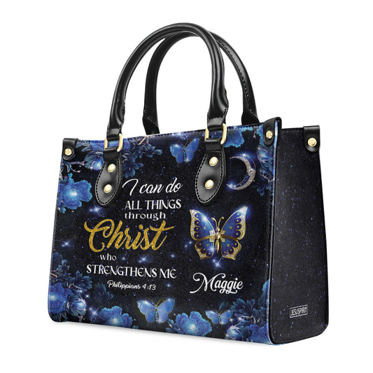 I Can Do All Things Through Christ - Pretty Personalized Leather Handbag NM143