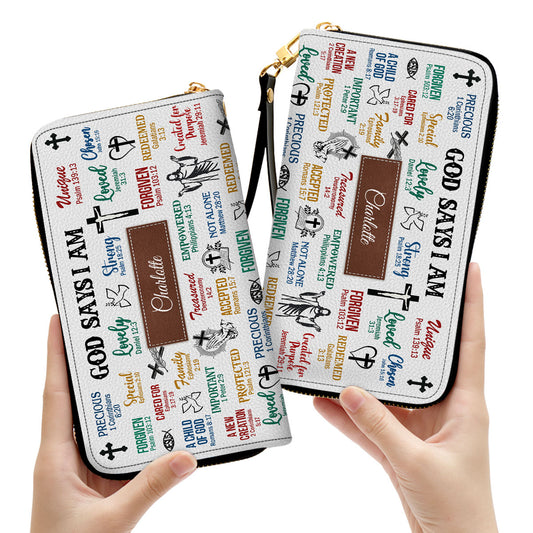 Jesuspirit | What God Says About You | Christian Presents For Religious Women | Personalized Zippered Leather Clutch Purse With Wristlet Strap Handle CPH742