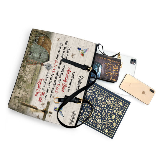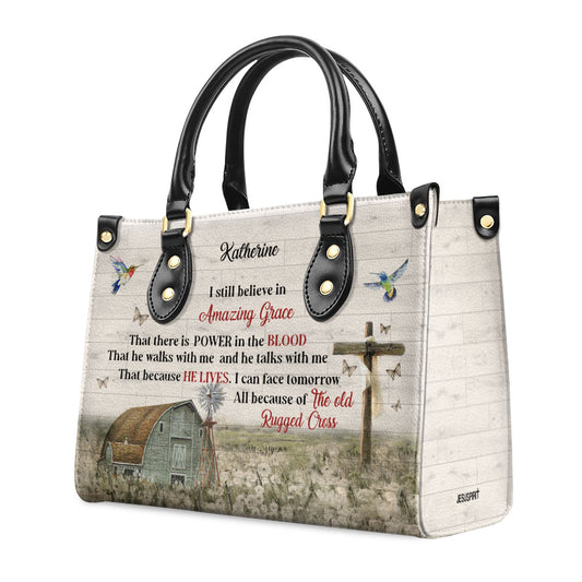 Gorgeous Personalized Cross Leather Handbag - I Still Believe In Amazing Grace NUHN145F