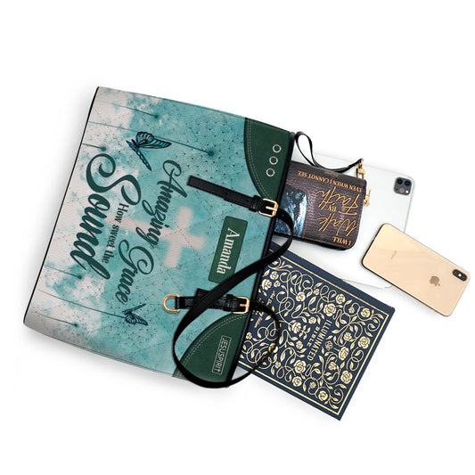 Amazing Grace - Adorable Personalized Large Leather Tote Bag NUHN350