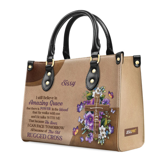 Stunning Personalized Floral Cross Leather Handbag - I Still Believe In Amazing Grace NUH269