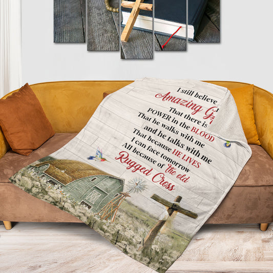 Lovely Cross Fleece Blanket - I Still Believe In Amazing Grace NUHN145G