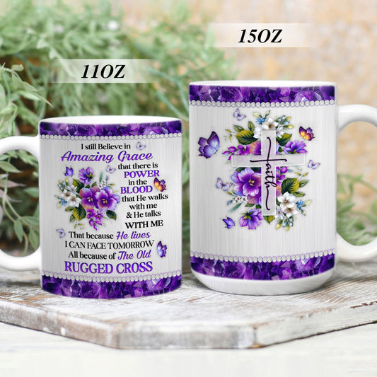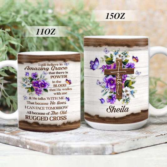 Lovely Personalized Flower White Ceramic Mug - I Still Believe In Amazing Grace NUHN145C
