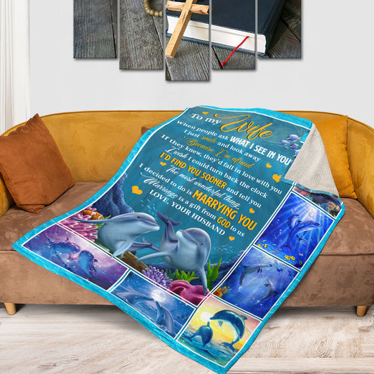 Marriage Is A Gift From God To Us - Cute Dolphin Couple Fleece Blanket AA198
