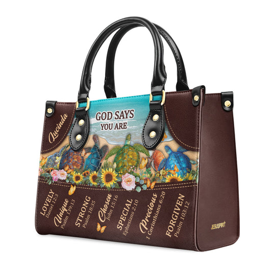 God Says You Are Lovely - Beautiful Personalized Turtle Leather Handbag M13
