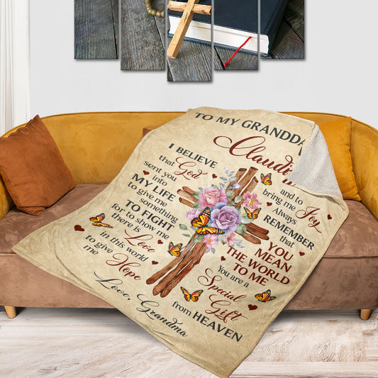 Fancy Floral Cross Fleece Blanket For Granddaughter - You Are A Special Gift From Heaven AA154