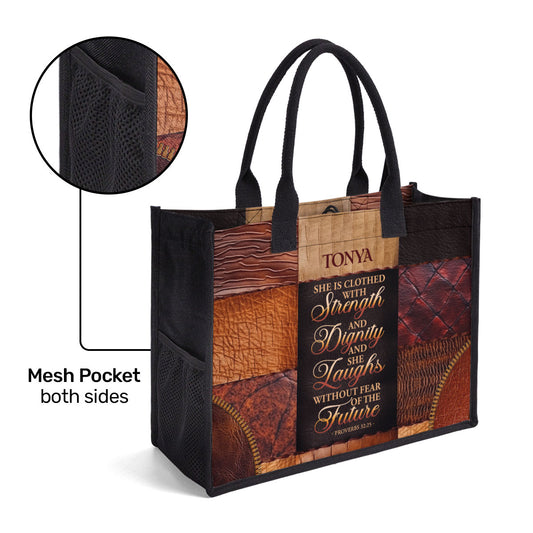 She Is Clothed With Strength And Dignity And She Laughs Without Fear Of The Future - Personalized New Canvas Tote Bag CTBM06