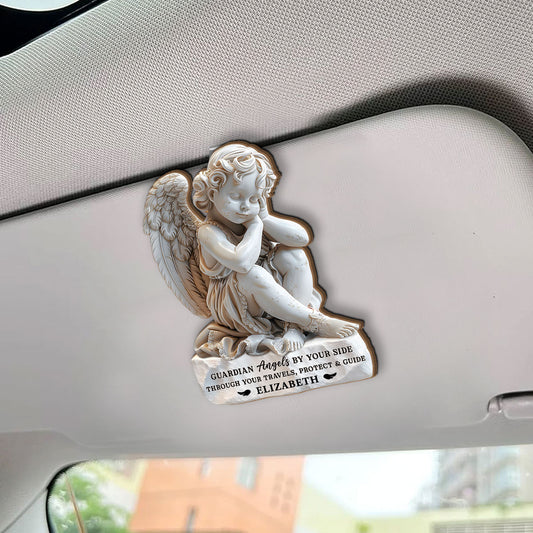 Guardian Angels By Your Side Through Your Travels, Protect & Guide | Personalized Car Visor Clip