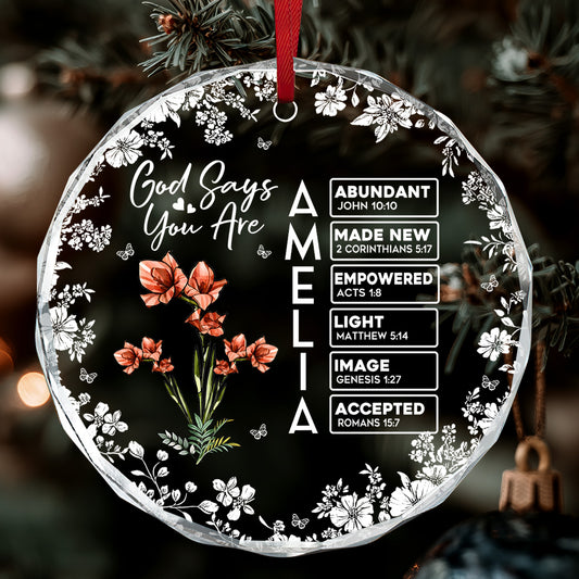 God Says I Am | Personalized Round Shaped Glass Ornament
