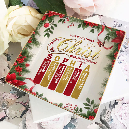I Can Do All Things Through Christ | Personalized Ceramic Ring Dish Square