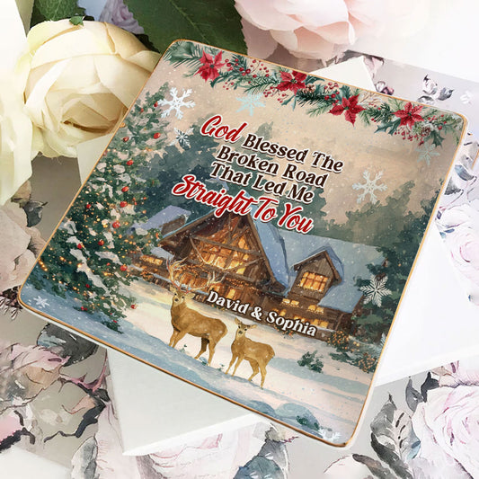 God Blessed The Broken Road | Personalized Ceramic Ring Dish Square