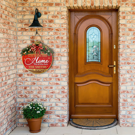 God Bless This Home And All Who Enter | Personalized Wooden Door Sign