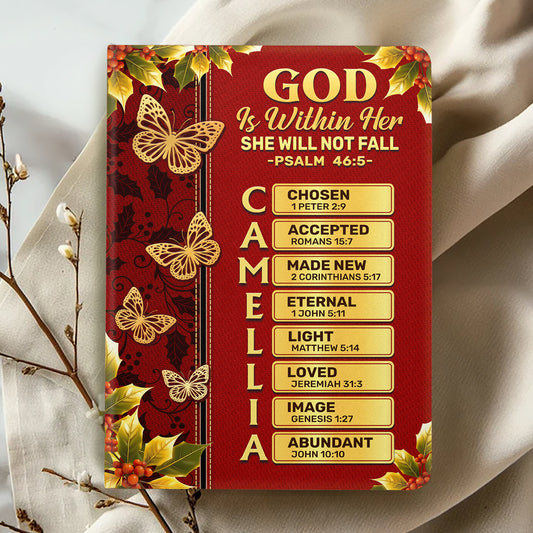 God Is Within Her She Will Not Fall | Personalized Leather Cover Notebook