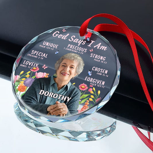 God Says I Am | Personalized 1-Side Round Glass Ornament JSURGOPPN2763