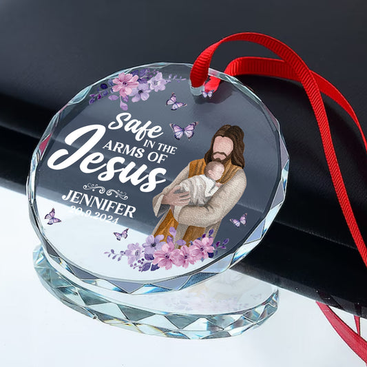 Baby Safe In The Arms Of Jesus | Personalized 1-Side Round Glass Ornament JSURGOPHLPA2677D