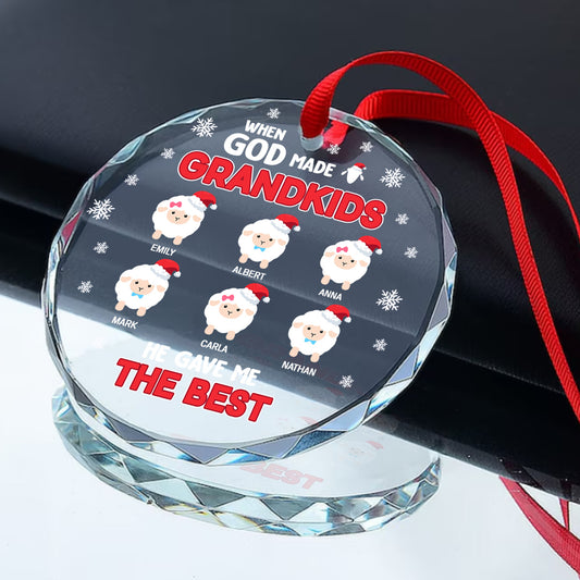 When God Made Grandkids He Gave Me The Best | Personalized 1-Side Round Glass Ornament JSURGOPHLPA2702L