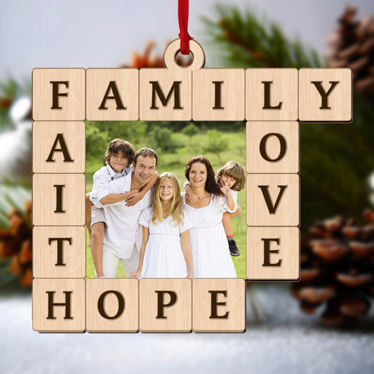 Family Faith Love Hope | Personalized Cutout & Print 2 Sides Wood Ornament JSCWO2SHLPA2749L