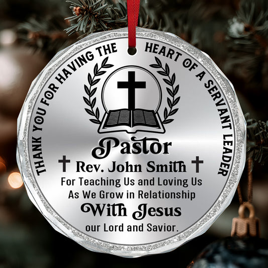 Thank You For Having The Heart Of A Servant Leader | Personalized Round Shaped Glass Ornament