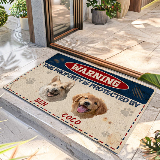 Warning This Property Is Protected By | Personalized Doormat JSDMPT1962L