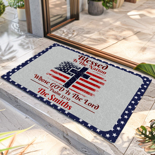 Blessed Is The Nation Whose God Is The Lord | Personalized Doormat