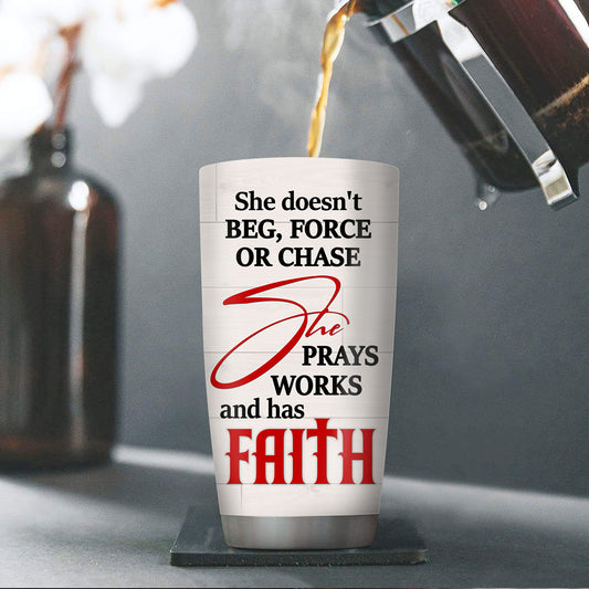 Pretty Personalized Floral Cross Stainless Steel Tumbler 20oz - She Prays, Works, And Has Faith NUH204