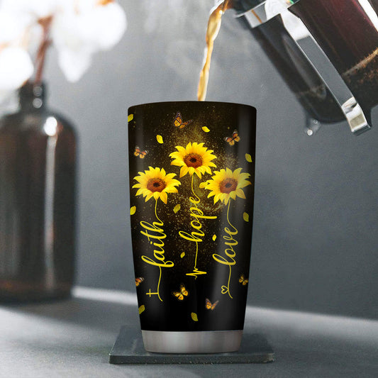 Faith, Hope And Love - Lovely Personalized Sunflower Stainless Steel Tumbler 20oz HHN210A