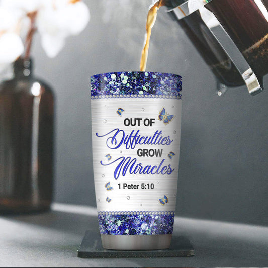Gorgeous Personalized Floral Butterfly Stainless Steel Tumbler 20oz - Out Of Difficulties, Grow Miracles NUA1571