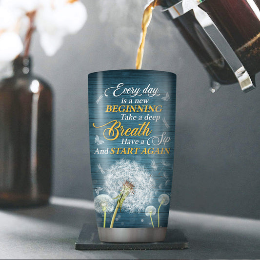Every Day Is A New Beginning - Pretty Personalized Dandelion Stainless Steel Tumbler 20oz NUA157