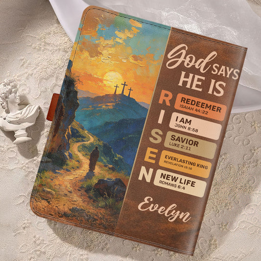God Says He Is Risen | Personalized Leather Notebook Cover With Pocket