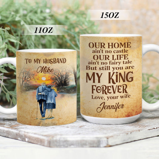 Sweet Personalized White Ceramic Mug For Husband - You Are My King Forever NUHN283