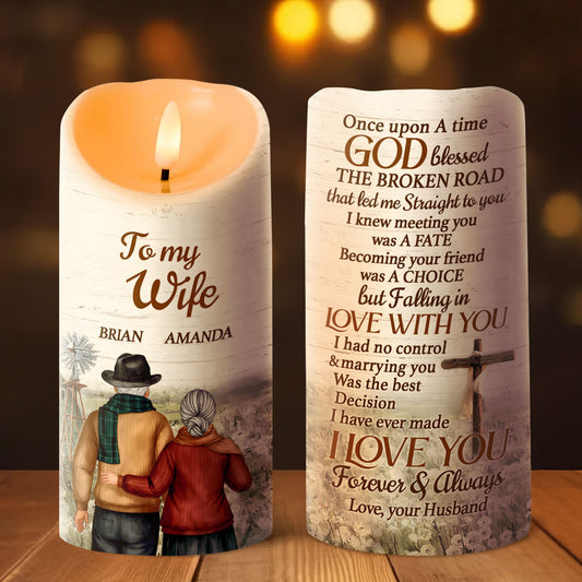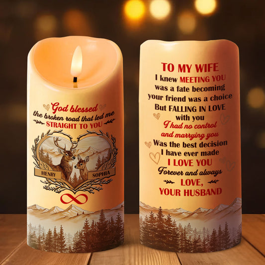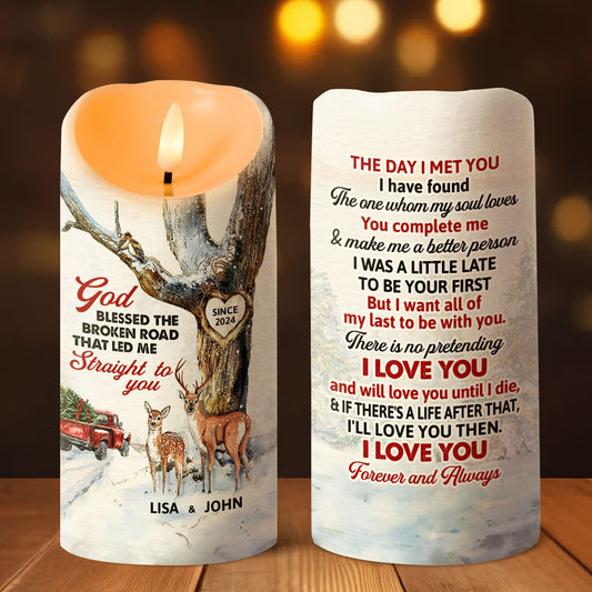 God Blessed The Broken Road That Led Me Straight To You | Personalized Flameless LED Candle