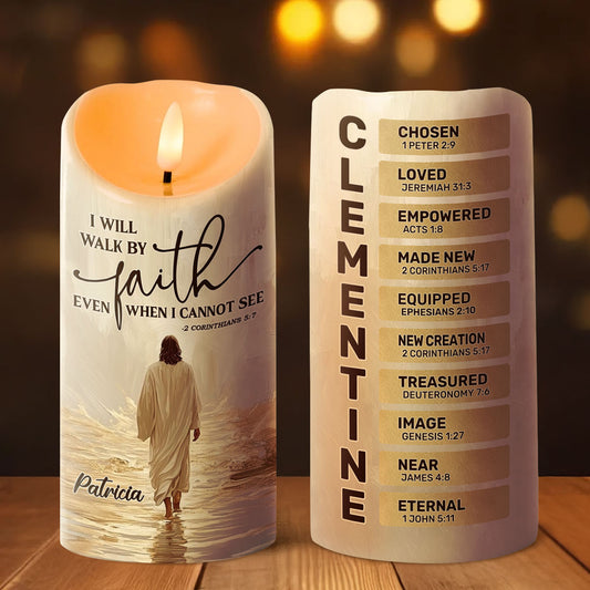I Will Walk By Faith Even When I Cannot See | Personalized Flameless LED Candle