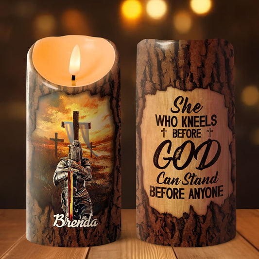 She Who Kneels Before God Can Stand Before Anyone | Personalized Flameless LED Candle